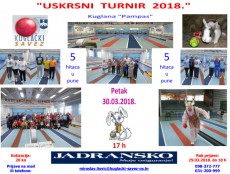 Do Äetvrtka se primaju prijave za Uskrsni turnir, koji će se održati u petak, 30. ožujka 2018. godine, na kuglani "Pampas" u Osijeku, sa poÄetkom u 17 sati.