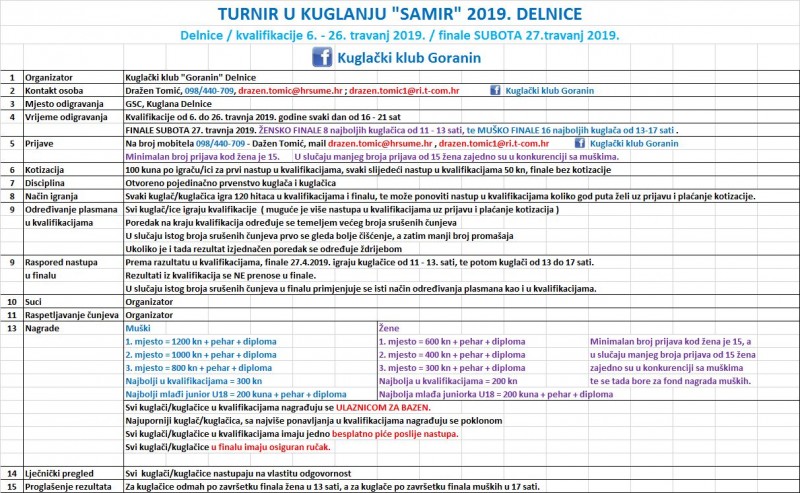 KALENDAR NATJECANJA