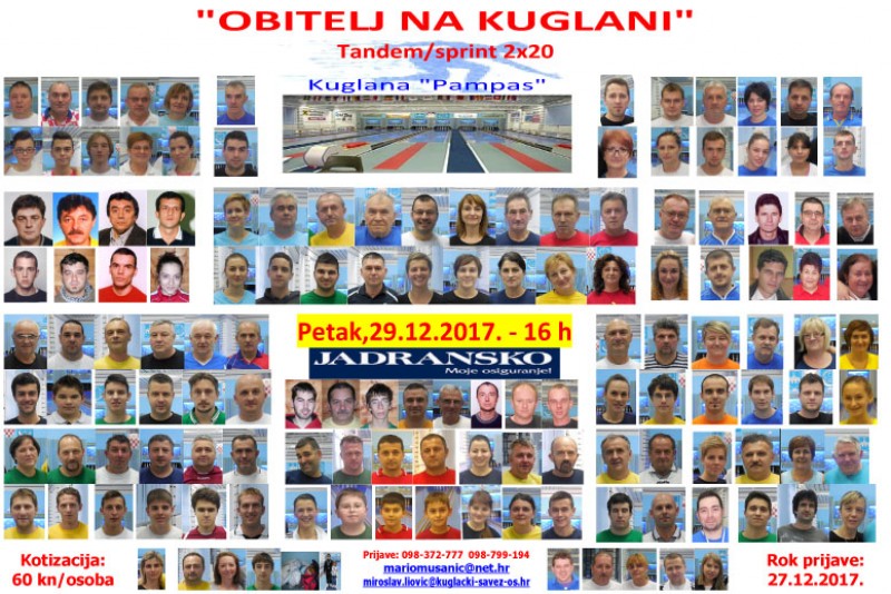 KuglaÄki turnir "Obitelj na kuglani" održat će se u petak, 29. prosinca 2017. godine, na kuglani "Pampas" u Osijeku.