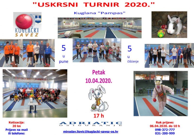 Najavljujemo skoraÅ¡nji Uskrsni turnir (10.04.2020.) na kuglani Pampas, kao i poÄetak gradske lige u disciplinama 4x120 hitaca i narodni naÄin.