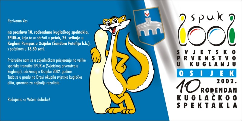 Prije 10 godina Osijekom je vladala prava kuglaÄka groznica. Bilo je vrijeme SPUK-a 2002. i svi putevi vodili su u Zrinjevac i njegovu okolinu. Sutra (petak) će na Pampasu biti kratki podsjetnik na ta zbivanja. Od 18,30 prikazat će se kratki film sa tog prvenstva, a od 19 kreće prava poslastica, utakmica izmeÄ‘u KK Konikom Osijeka i selekcije SPUK-a.